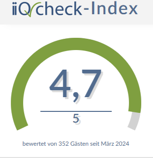 ![]() Alle AKZENT Hotels setzen aktiv den iiQ-Check als unabhängiges Bewertungsinstrument ein. Als Reiseinteressent erkennen Sie so auf einen Blick, was andere Gäste über das Hotel denken und können sich so ein authentisches Bild von Ihrem Wunschziel machen. Helfen Sie uns bei der Sicherung unseres hohen Qualitätsstandards! Wie funktioniert's? Ganz einfach: Einige Tage nach Ihrer Abreise erhalten Sie von dem AKZENT Hotelier eine E-Mail, die einen Link zum iiQ-Check-Fragebogen enthält! Wir möchten Sie bitten, den Fragebogen auszufüllen. So leisten Sie einen Beitrag zu einer erfolgreichen Qualitätssicherung und helfen auch anderen Gästen bei deren Reiseentscheidung. Die AKZENT Hotels sagen Danke für Ihre aktive Unterstützung! |